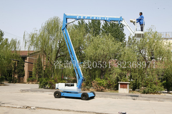 自行式折臂升降機(jī),利用柴油機(jī)為動(dòng)力,加電瓶采用電啟動(dòng),適用于野外及無(wú)電源場(chǎng)所作業(yè),自支腿、自升降、自行走,360°旋轉(zhuǎn)作業(yè)。本產(chǎn)品具有操作簡(jiǎn)單,使用方便,作業(yè)面大,特別是能夠懸伸作業(yè),跨越一定的障礙物或在一處升降,可進(jìn)行大范圍多點(diǎn)升降作業(yè)的特點(diǎn),極大地提高了工作效率。該系列高空作業(yè)平臺(tái)車廣泛用于市政、電力、路燈、公路、碼頭、廣告、園林、小區(qū)物業(yè)、廠礦企業(yè)車間等行業(yè)范圍升降作業(yè)。上升,下降,旋轉(zhuǎn)(360度)、探出等操作,易于跨越障礙到達(dá)工作位置,在不同情況下快,慢行走(前進(jìn),后退,轉(zhuǎn)方向)。