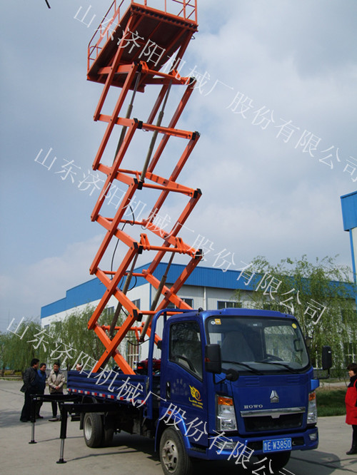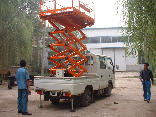 車載剪叉式升降平臺:車載式升降平臺是由升降平臺與汽車改裝的高空作業(yè)設備。該設備集四輪移動式與二輪牽引式于一身,采用汽車或電瓶車底盤作平臺底架,利用汽車本身發(fā)動機或直流電作動力,實現升降平臺的升降、行走功能,使升降平臺具有更好的靈活性和機動性,提高了高空作業(yè)效率,廣泛用于城建、油田、交通、市政建設等區(qū)域范圍廣、流動性大的高空作業(yè)。汽車可由客戶自行提供或根據客戶的要求我們幫助采購。